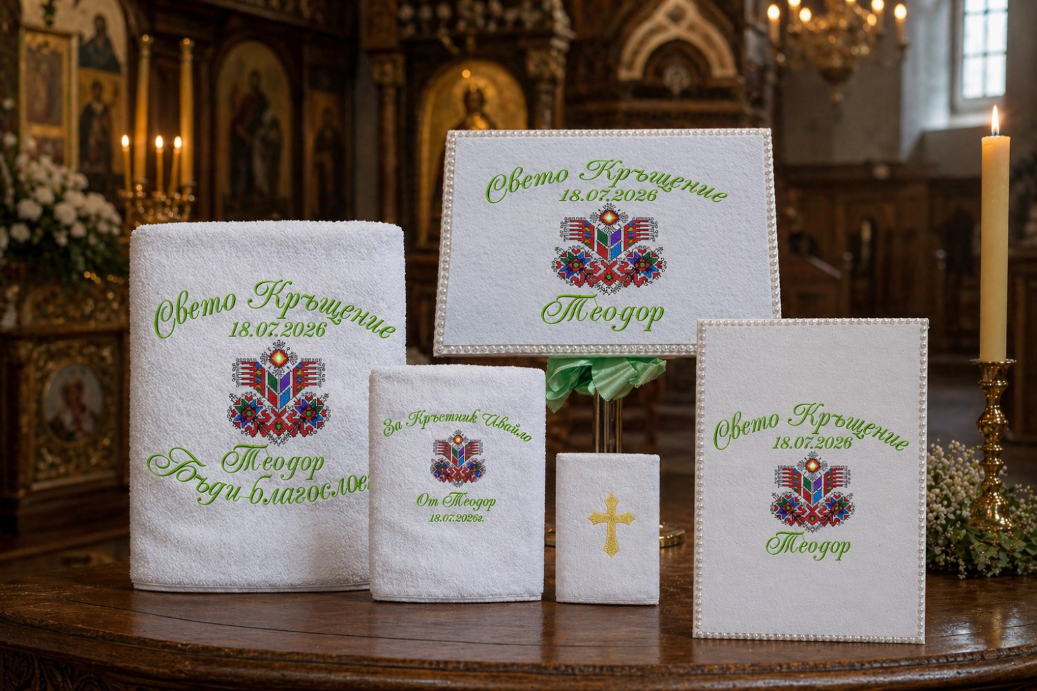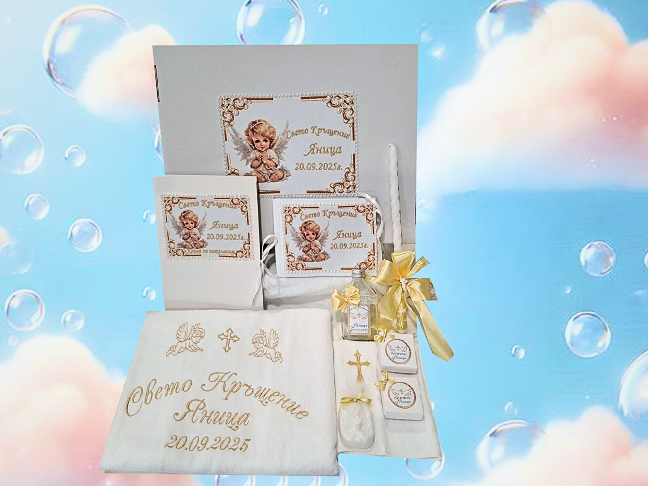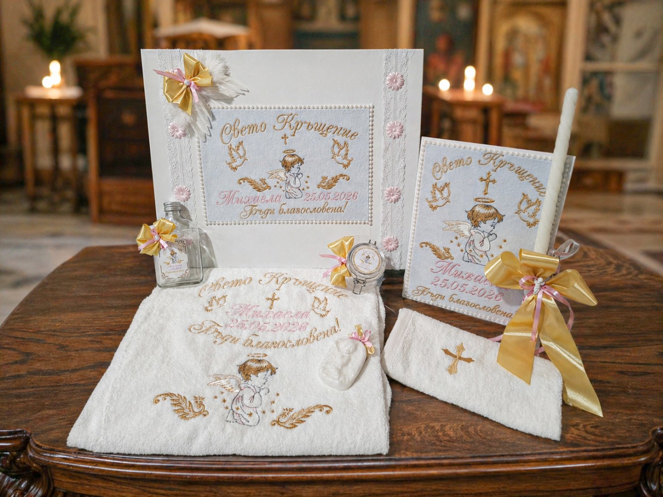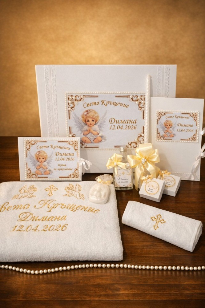 Гравирана кутия със свещ подарък за кръстница