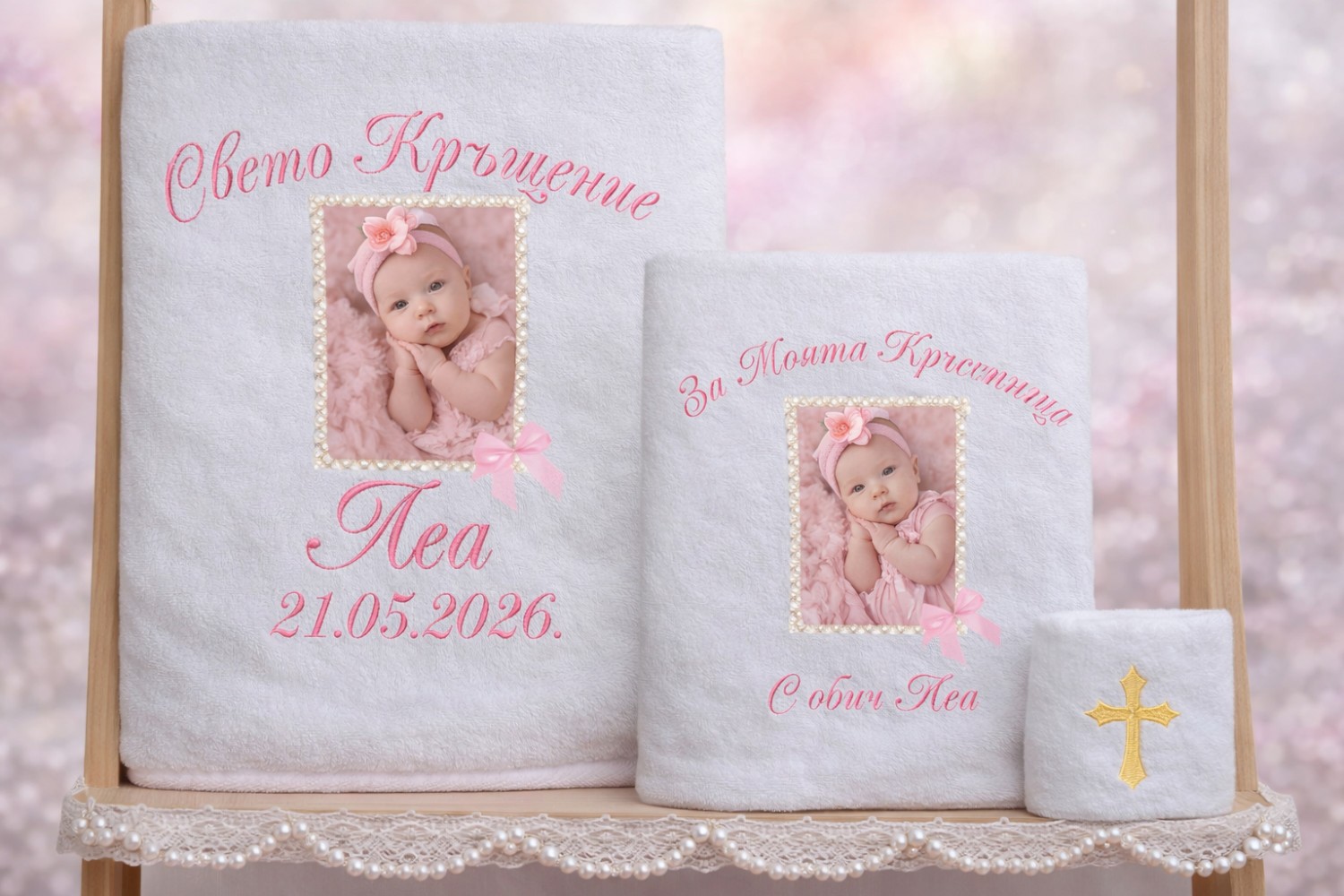 Комплект кърпи за кръщене - със снимка