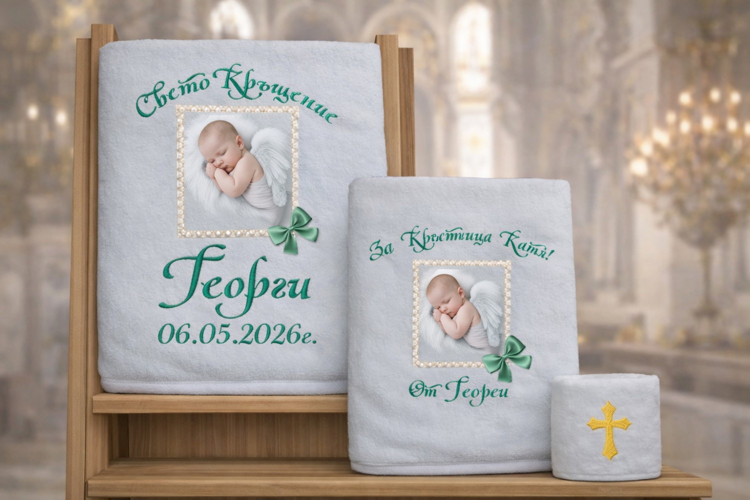 Комплект кърпи за кръщене - със снимка