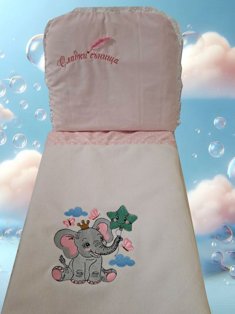 Бебешко спално бельо от Бебешка визитка. Съставено от 100% висококачествен памук спалният комплект ще накара Вашето бебе да се чувства комфортно и да бъде обгърнато от мекота и нежност. Натуралната материя на чистия 100% Памук позволява на Вашето бебе да диша спокойно през цялата нощ.