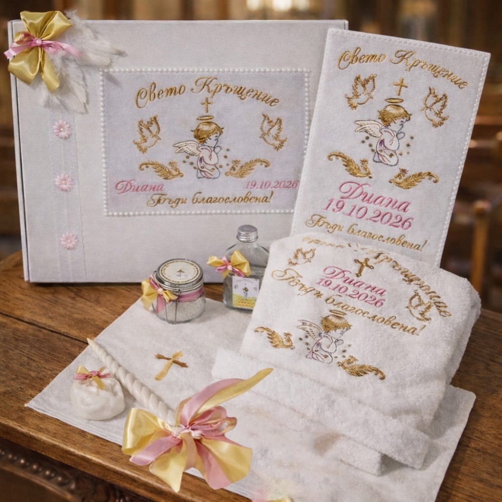 Халат и аксесоари за кръщене -шевица