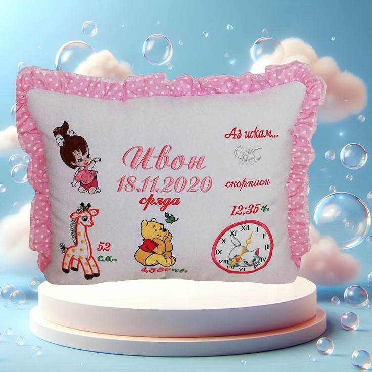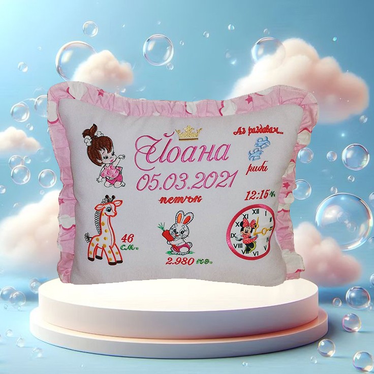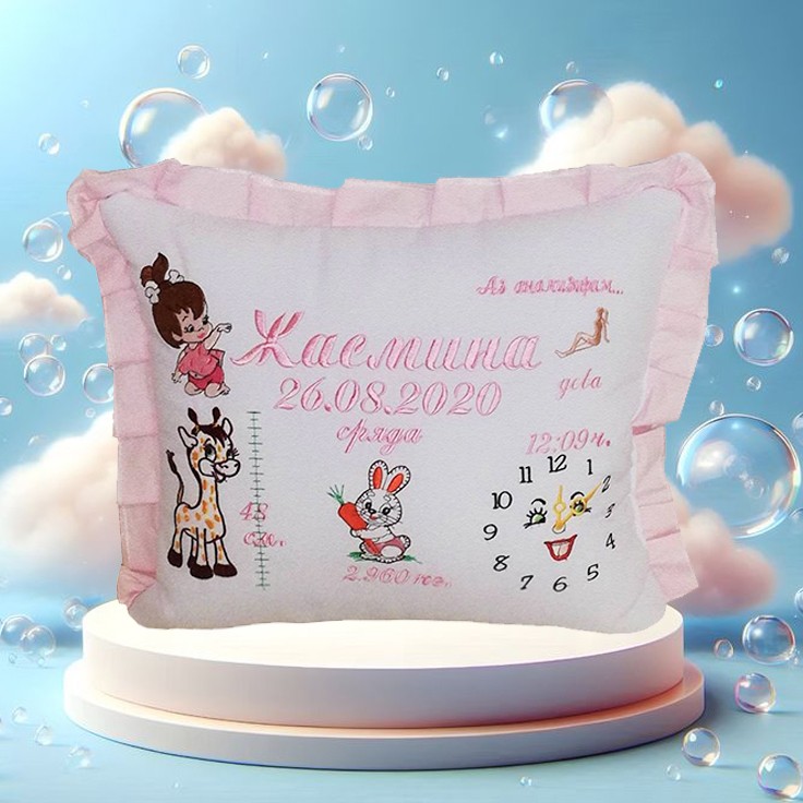Бебешка възглавничка визитка Бродерия-Жасмина