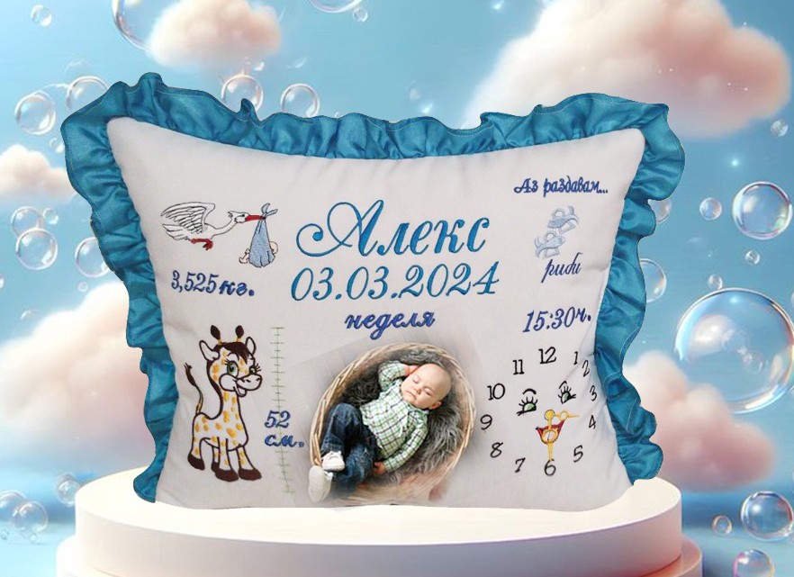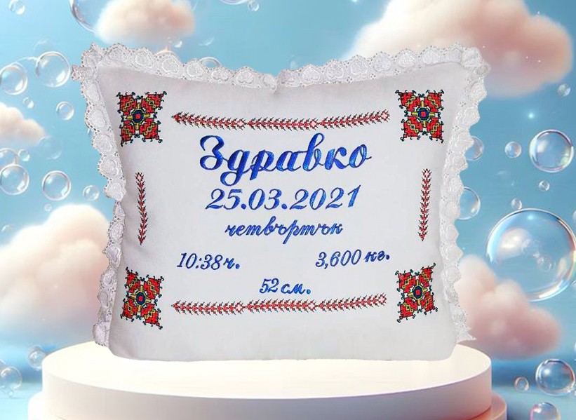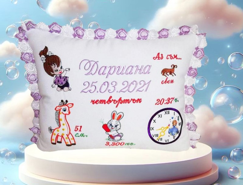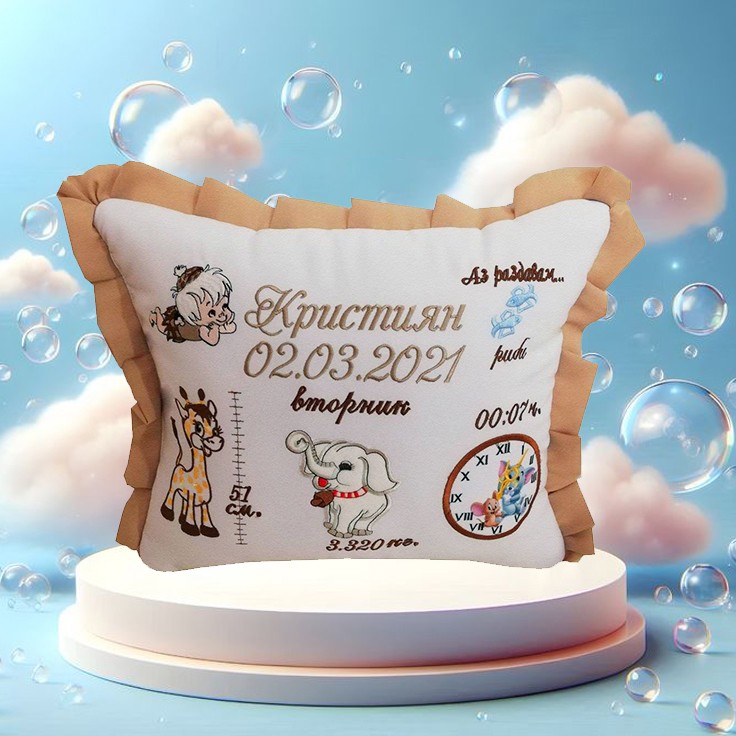 Бебешка възглавничка визитка Бродерия-Кристиян
